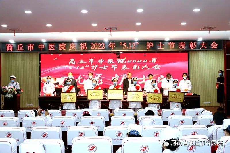 为庆祝“5.12”国际护士节,对在护理工作岗位上表现突出的先进典型进行表彰,5月11日下午,商丘市中医院召开了庆祝2022年“5.12”护士节表彰大会。商丘市卫生健康委党组书记、主任、中医院党委书记李德怀出席了会议并作了重要讲话,商丘市中医院院长王雷,副院长张士兰、张柏华、郭玉锋、彭春峰,工会主席王冬梅院以及护士长、优秀护士、优秀护士长、十佳护士、30 年工龄护士,技能大赛获奖选手,部分职能科室主任等参加了会议。