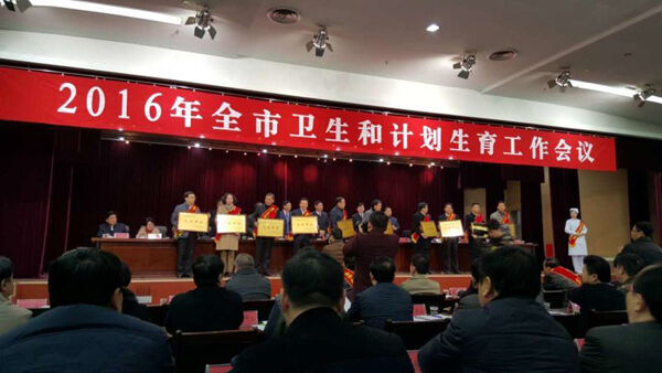 在元月29日上午举行的商丘市卫生计生工作会上,商丘市中医院荣获2015年度全市卫生工作先进单位称号。院长朱伯健代表医院上台领奖。