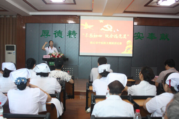 “两学一做”学习教育开展以来,我院党委高度重视,积极作为,对学习教育进行了整体部署。这次在党员中组织 “不忘初心 做合格党员”演讲比赛就是系列活动之一。为了组织好本次活动,院人事科等部门积极筹备、组织,医院各党支部积极推荐,经院初审,8名优秀年轻党员脱颖而出参加了此次比赛。他们回顾党的光辉历程,围绕“两学一做”学习教育,结合自身思想、工作和生活实际,用真挚朴素的语言,真实感人的故事,从不同视角讲述了组织培养历程和人生成长过程中的切身体会、实践感悟和理性认识,抒发了对党的真挚情感, 抒发了“不忘初心 做合格党员”的奉献情怀,展现了当代共产党员的风采。
