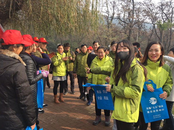 为培养团队精神、展现团队力量,激励先进人物,激发工作热情,日前,我院工会、人事科、后勤科联合组织“清新商丘”志愿者和“两学一做”知识竞赛获奖者20余人,至安徽淮北市相山公园等地开展拓展活动 。此次活动的主题为“绿色出行,重视团队,超越自己”。在相山公园,大家参观了淮海战役将军碑林和将军亭,缅怀先烈,珍惜当下,增强爱国爱党意识。期间,偶遇相山“七五”普法工作者,医院职工积极与其互动,正确回答问题,并得到了鼓励奖品。参加活动人员还自觉收集路边垃圾,以实际行动倡导游客增强爱护环境意识。下午,大家参观了相山湿地公园,并组织了大家三、五人一队骑多人自行车环岛游活动。迎着温暖的冬阳,大家有说有笑,齐心协力,你追我赶,在不知不觉中完成环岛游。骑车环岛活动,不仅使大家放松身心而且展现了团队协作精神。