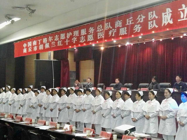12月14日,中国南丁格尔志愿护理服务总队商丘分队暨商丘市胡佩兰红十字志愿医疗服务队成立大会在市政府第一会议室隆重召开。商丘市中医院成为中国南丁格尔志愿护理服务总队全国第167分队暨商丘市胡佩兰红十字志愿医疗服务队分队。商丘市副市长倪玉民、市卫计委主任张树仁、副主任杨彦林、中国南丁格尔志愿护理服务总队副理事长陈东、应岚以及省红十字学会会长郭巧敏、市红十字会会长马召献、市红十字会理事长高亚萍、市护理学会理事长石红英等领导和来自21家医院及医学院校的志愿者代表300余人参加了此次大会。