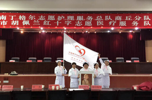 会上,倪玉民副市长为中国南丁格尔志愿护理服务总队商丘分队暨商丘市胡佩兰红十字志愿医疗服务队成立致辞。市卫计委张树仁主任做了重要讲话。商丘市胡佩兰红十字志愿医疗服务队授予市中医院分队旗帜;中国南丁格尔志愿护理服务总队授予市中医院分队旗帜和南丁格尔画像。