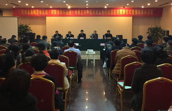 洛阳正骨医院(河南省骨科医院)与我院正式成立骨科联盟医院 时间:2016-12-21 10:21:18 浏览量:90次 主会场 12月20日,河南省洛阳正骨医院(河南省骨科医院)与商丘市中医院成立骨科联盟医院揭牌仪式暨豫东骨科论坛在王朝国际大酒店大会议室隆重举行。商丘市卫计委党组书记、主任张树仁,河南省洛阳正骨医院院长李无阴,河南省洛阳正骨医院(河南省骨科医院)郑州院区管委会主任孙永强,商丘市中医院院长朱伯健,党委书记马玉东等领导,以及河南省洛阳正骨医院(河南省骨科医院)专家组、商丘市中医院部分专家和职工代表、商丘市各县市区医疗机构相关领导及参会代表、乡镇卫生院和社区服务站部分业务人员200余人参加了此次活动。 活动现场,商丘市卫计委党组书记、主任张树仁致欢迎词,并向本次活动的举办表示热烈祝贺。同时他希望通过此次活动两家医院可以资源共享,优势共赢,从而为商丘大众提供更加优质便捷的医疗服务。河南省洛阳正骨医院院长李无阴在致辞时指出,将高度重视与商丘市中医院的合作,将双方的联盟放在战略层面进行战略规划,在双方联盟合作中取长补短,上下联动,实现共同发展。而作为东道主,商丘市中医院院长朱伯健致辞时说,商丘市中医院骨伤科将以此为契机,踏上科室发展的快车道,加速提升技术水平和服务能力,更好的服务于商丘乃至周边人民群众。会上,河南省洛阳正骨医院(河南省骨科医院)郑州院区管委会主任孙永强与商丘市中医院院长朱伯健为骨科联盟医院签订合作协议,并为骨科联盟医院揭牌。 张树仁主任致辞 李无阴院长致辞 朱伯健院长致辞 马玉东书记主持 孙永强主任讲座 签订合作协议 揭牌仪式 合影 义诊现场 仪式结束后“豫东骨科论坛”开始,河南省洛阳正骨医院(河南省骨科医院)专家和商丘市中医院专家分别就骨伤科疾病的诊治进行了精彩的学术讲座。同时洛阳正骨医院(河南省骨科医院)专家在商丘市中医院1号病房大厅内举行了大型义诊活动。近200余位骨科病患到场接受了专家的亲诊。 通讯员:宣传科 柳明扬 上一篇:我院选派两位专业技术人员参加援疆工作医疗队 下一篇:我院举办“首席专家”第二轮评选活动 预约挂号 坐诊时间 门诊流程 住院流程 医保服务 病友之声 来院路线