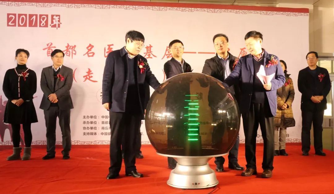 商丘市人民政府副主任吕文松表示此次首都名医走基层——中原行活动是一项惠及基层百姓的民生工程,是助力医疗服务提升的生动实践,是开展医学交流的重要平台。首都名医团队带来的新理念和先进技术必将为商丘医疗卫生事业发展带来新的活力,推动商丘卫生事业新的发展,全市卫生系统要以此次活动为契机,向专家们学习精湛的医疗技术,优质的服务理念和认真严谨的工作作风,不断推进商丘中医药事业发展,更好地为广大人民群众提供更加优质的中医药服务。国家中医药管理局机关服务局副局长朱佳卿致辞。他说,本次活动旨在深入贯彻习近平总书记提出的“没有全民健康,就没有全面小康”的战略思想,推动优质卫生资源地区覆盖,将先进的诊疗技术带到基层,实现优势医疗资源合理配备和共享,更好地造福百姓,为推进健康中国建设、全面建成小康社会做出贡献。随后,朱佳卿副局长、吕文松副主任、张树仁主任以及李德怀院长共同点亮启动球。朱佳卿副局长宣布活动启动。