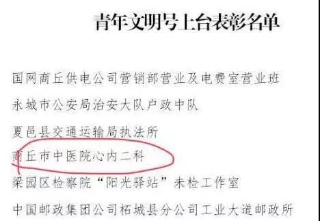 为大力弘扬职业文明和青年工匠精神,促进我市社会经济发展和树立商丘文明形象。为表彰先进、树立典型、深入持久的开展“青年文明号”活动,共青团商丘市委,商丘市创建“争创青年文明号”活动组委会决定授予商丘市中医院心内二科等青年集体为商丘市“青年文明号”商丘市中医院心内二科是商丘市重点专科,现有医务人员14人,其中40岁以下青年人13人,占总人数的92.8%,科室医护人员年轻、朝气、充满活力,在科室医护人员的共同努力下,在过去的一年里取得了非凡的成绩。对于心内科医护人员来说,时间就是心肌,时间就是生命;科室所有医护人员每天都在和死神赛跑。早一秒钟治疗,病人就多一份生存的希望。科室目前承担着商丘市中医乃至商丘市地区的急性心肌梗死的救治工作,目前商丘市范围内能够独立做急性心肌梗死急诊介入的只有两家医院,其中一个就是我院(我科),为方便病人诊治,科室为急性心肌梗死病人开通了绿色通道,到院后,可绕行急诊科、心内科,直接至导管室手术,这样可以更加快速的让病人得到**的治疗。在急性心肌梗死治疗中,在我市率先开展了主动脉球囊反搏(IABP)辅助下行介入治疗。科室成功开展了商丘市第一例冠状动脉旋磨术,填补了商丘市医疗界的一项空白,使复杂病变在我院同样可以得到很好的治疗。另外科室最近药物球囊治疗冠状动脉狭窄已经排上日程,真正做到有介入无植入(不需要放支架,可以达到和放支架一样的治疗效果),我科室将继续开展像血管内超声(IVUS)等多项新技术,为商丘市广大心脏病患者保驾护航。科室每天都在收治不同的心脏病患者,为他们解除疾病所带来的痛苦。科室主任吕国伟目前是医院**的年龄在四十岁以下的科主任。虽然年轻,但工作能力和成绩却名列前茅,在2018年中个人获得医院特殊贡献奖和河南省红十字会送医下乡先进个人称号。并带领科室取得了技术创新一等奖。科室护理人员在各项比赛中均取得了优秀的成绩。多人被提名为今年的优秀护理人员候选人。就是这样一个年轻的团队填补了医院的诸多空白,甚至商丘市医疗界的空白。科室多次收到患者的表扬信及锦旗,在患者眼里这里就是安全的港湾,科室的医护人员就是他们的天使。就像患者常说的一句话“有你们在我放心”。