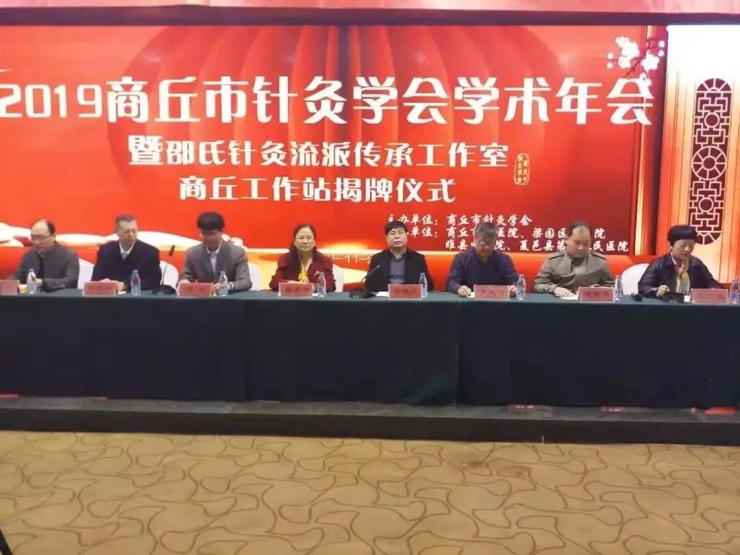 11月23日“2019商丘市针灸学会学术年会暨河南邵氏针灸流派传承工作室商丘市中医院工作站揭牌仪式”举行。出席本次会议的领导有:河南中医药大学副院长胡斌、商丘市中医院院长李德怀、河南中医药大学邵素菊教授、商丘市中医院副院长张士兰、商丘市针灸学会会长徐守臣等领导。