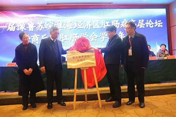 会上,商丘市卫健委调研员朱伯健,商丘市中医院院长李德怀,商丘市卫健委中医科科长高玉霞,商丘市肛肠病诊疗中心主任丁建华共同为“河南省区域中医专科诊疗中心建设单位商丘市中医院肛肠科”揭牌。