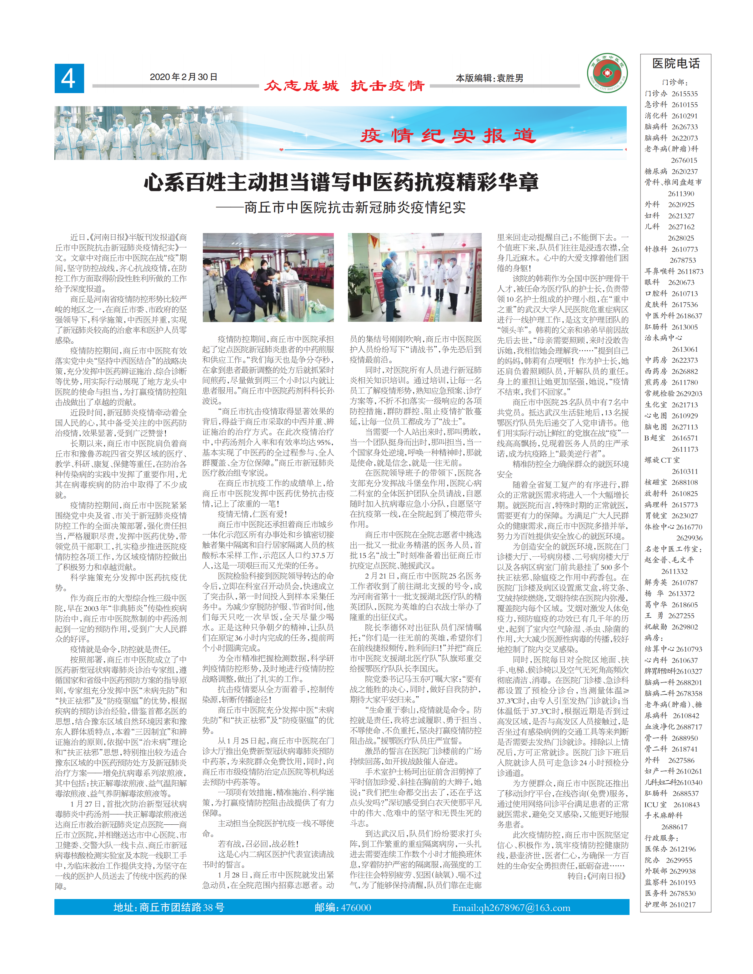2020提2月份院报 88期 时间:2023-03-27 14:38:44 浏览量:4024次 上一篇:2020年1月份院报(新冠肺炎) 87期 下一篇:2020年3月份院报 89期 预约挂号 坐诊时间 门诊流程 住院流程 医保服务 病友之声 来院路线